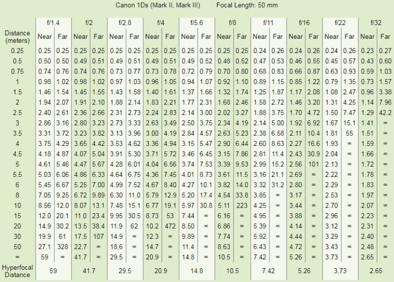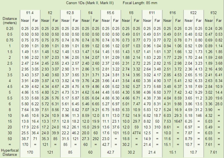 수치를 보면 85mm 랜즈의 5.6의 조리개가 심도 측면에서 50mm 랜즈의 1.4와 거의 비슷함을 알 수 있다.