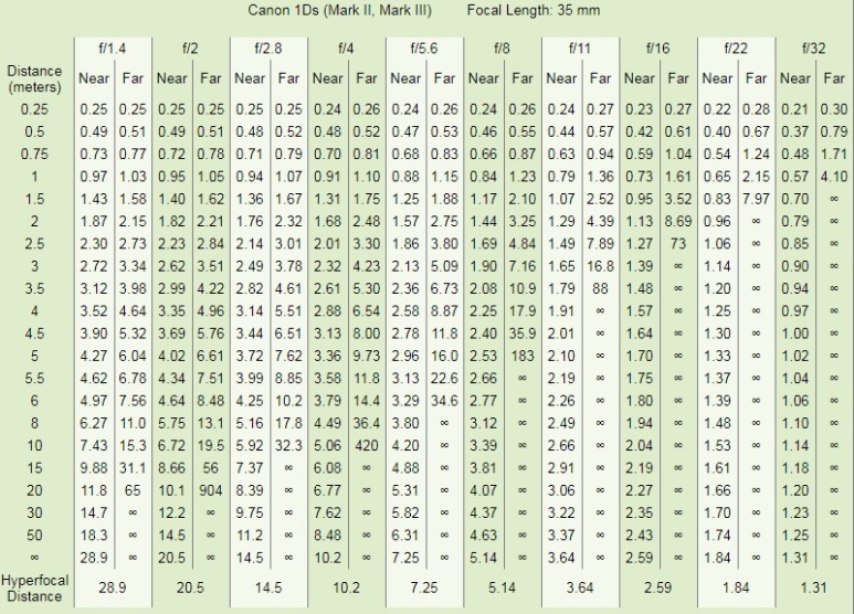 조리개 1.4 : 0.99~1.01m (총 2cm의 간격에서 촛점이 맞음)