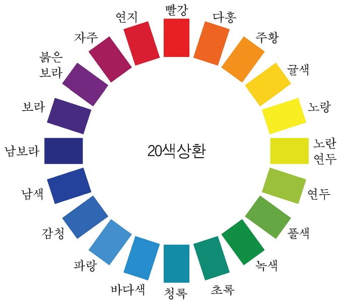1) 무채색 : 흰색, 회색, 검정색 (색상, 채도가 없는 색)